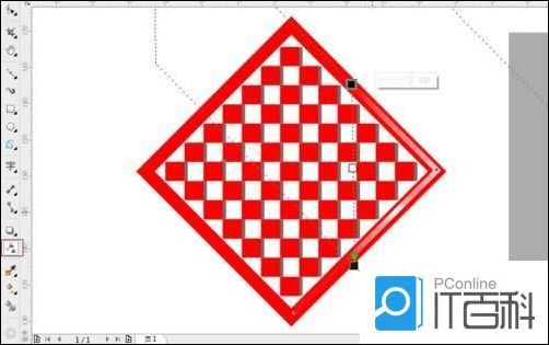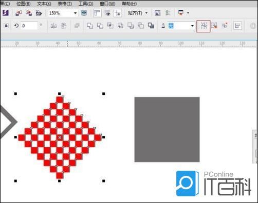 6、绘制一个正方形,将矩形填充步骤5的70%的灰色。复制一份,备份。将其中一个,选中复制(按住shift键点右键)缩小,填充白色。框选两个,将其修剪。将里面那个删除,就出现边框的效果了。按alt+F8旋转-->旋转45°-->运用