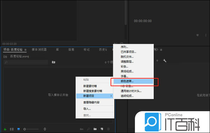 1、在一个PR项目中先来新建一个 颜色遮罩 ,并应用这个颜色遮罩充当背景颜色。