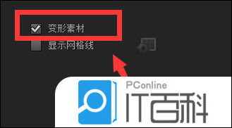 3、点击选项后,在 变形素材处 ,点击左键打钩,如图所示