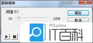 3、然后单击“选项”,在弹出的对话框中通过设置“阀值”来消除噪音,可以边调整阀值边听噪音消除情况。