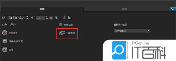 4、在编辑窗口中选择“分割音频",完成后视频下方会多出一条音轨,直接把音轨上的原声音删掉;