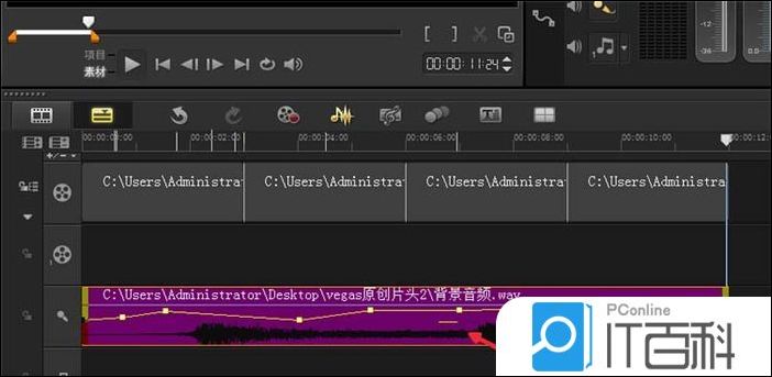 5、随后我们就可以看到,音频轨上出现了音波,还有一条横线,通过调节横线的高低,我们就可以控制各个时间音乐的音量大小了