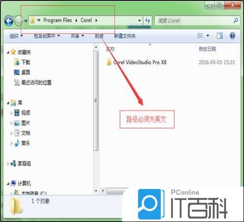 2、 会声会影安装的文件路径,必须为英 文 。(有兴趣的可以百度下)