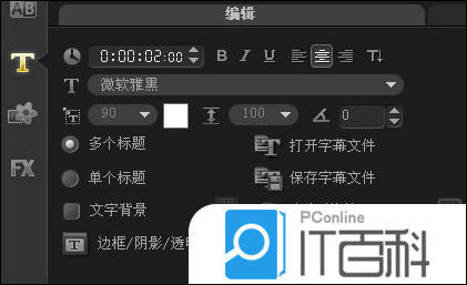 四、展开“选项”面板,在“编辑”选项卡中设置“区间”参数为2秒,“字体”为“微软雅黑”,“字体大小”参数为90。