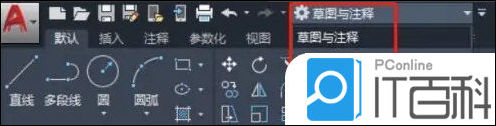 第三步:可以看到它默认的工作空间是“草图与注释”,点击“草图与注释”进行修改(如图所示)。