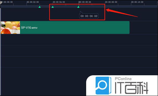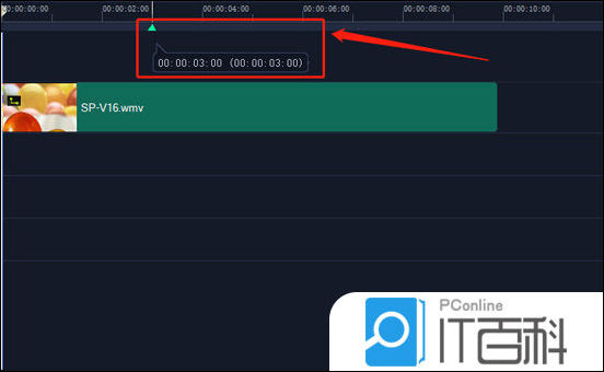 2、在3S的位置,我们挪动鼠标指针在时间轴上,当指针尾部变成一个圆圈里面有个三角形的时候,单击一下,标记则打上了。