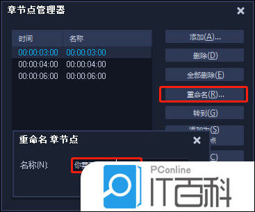 5、在章节点管理器中,可以添加、删除、重命名和转到对应的节点。
