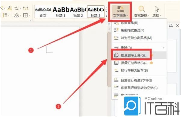 2、点击“文字排版”按钮,再点击“批量删除工具”选项位置。