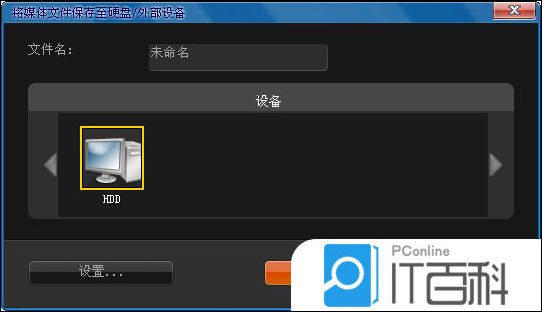 弹出“将媒体文件保存至硬盘/外部设备”对话框,选择视频输出的目标设备,然后单击“确定”按钮完成设置。