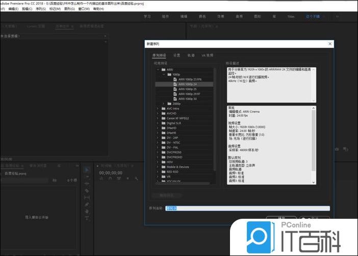 1、找到安装的Premiere软件,新建一个PR剪辑项目, 在来创建一个序列 ,选择一个预设序列。