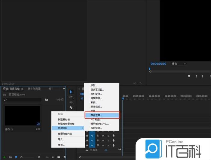 2、然后在项目窗口右键鼠标,会出现右键鼠标选项,在这个右键鼠标选项中选择新建“ 颜色遮罩 ”。根据提示一步步创建一个颜色遮罩出来。
