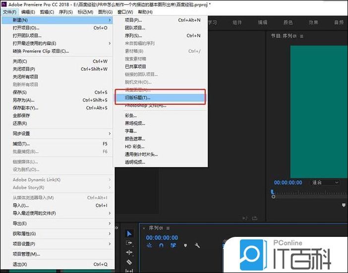 4、单击文件菜单, 在文件菜单中选择新建中的旧版标题选项。