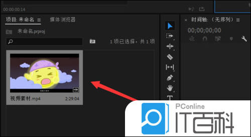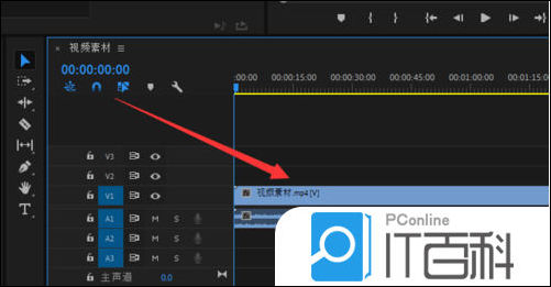 3、然后将视频素材拖到右侧的序列面板,如下图所示