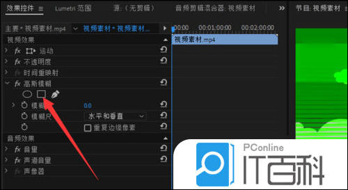 5、接下来选择右侧的 高斯模糊 ,将它拖拽到序列里面,如下图所示
