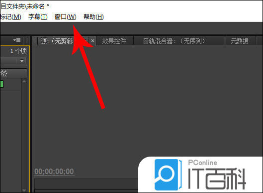 1、发现时间轴面板消失时点击pr菜单栏中的“ 窗口 ”