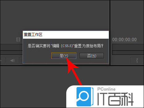 3、这时pr会打开“重 置工作区” 提示弹窗,然后点击“ 是” ,这样时间轴面板就会回来了