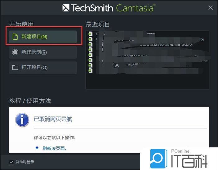 1、先安装好Camtasia 9软件,然后双击Camtasia 9在开始欢迎界面中选择“ 新建项目 ”。