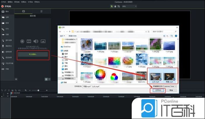 2、新建了一个空项目之后,执行导入媒体,在打开窗口中选择两个视频媒体打开。