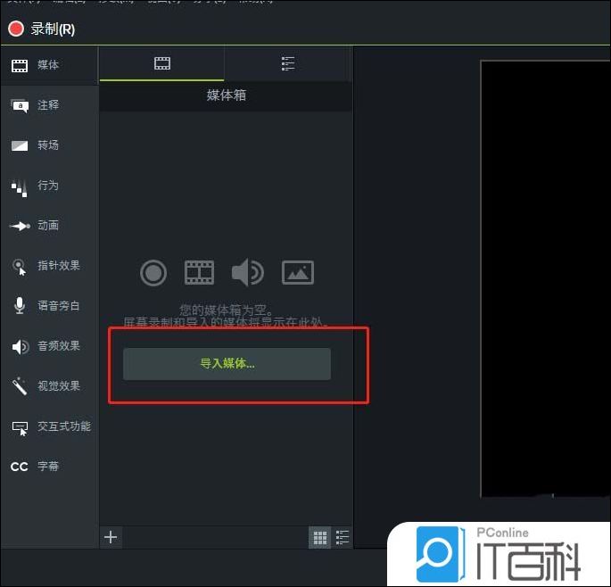 2、新建了一个Camtasia 9项目之后,在这个项目的媒体选项中有一个“ 导入媒体 ”命令,单击执行该命令。