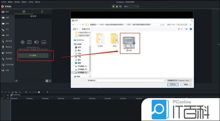 2、新建完项目之后,点击 导入媒体按钮 ,弹出导入媒体对话窗口,选择一个视频导入到Camtasia 9软件中。