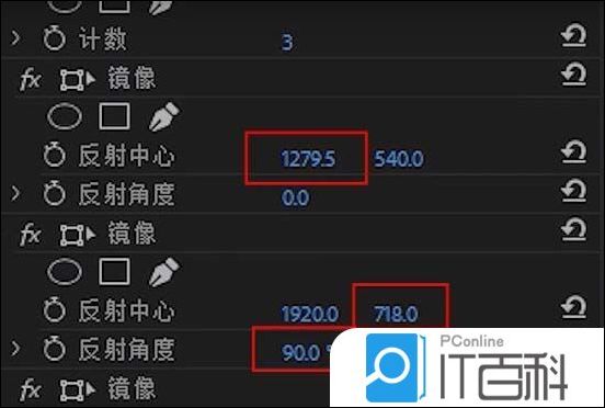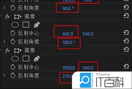 6、接着为调整图层添加 4个镜像滤镜 ,其参数可以参考下图所示的数值。