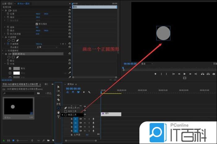 2、找到工具栏中的 椭圆工具, 使用 椭圆工具 结合相应的辅助键在序列上绘制出一个大小差不多的正圆图形出来。