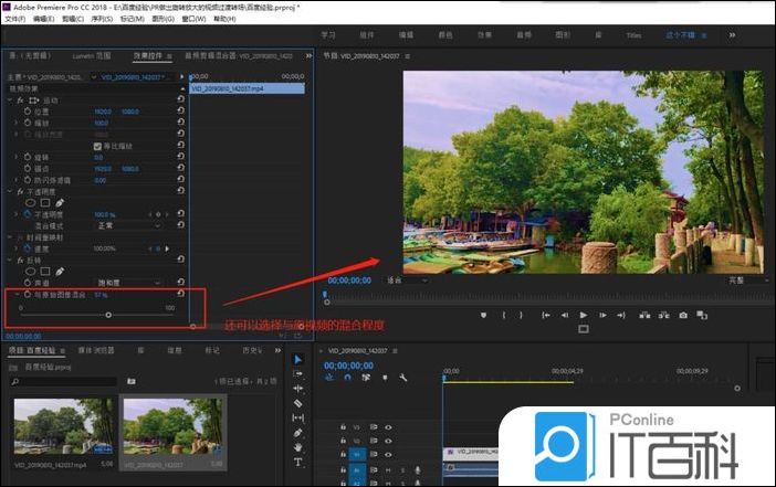 6、最后在反转效果的效果控件设置中还有一个“ 与原始图像混合 ”,设置混合程度,选择其效果与原图像进行混合。