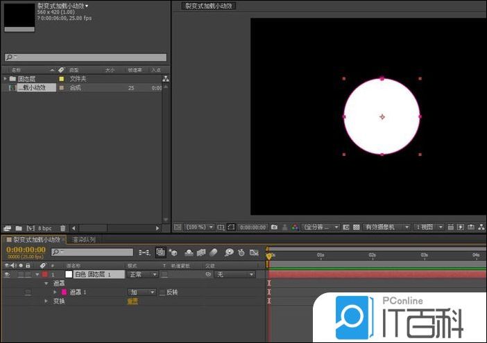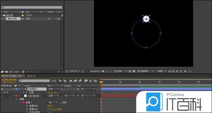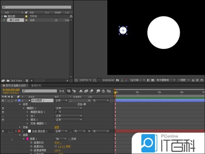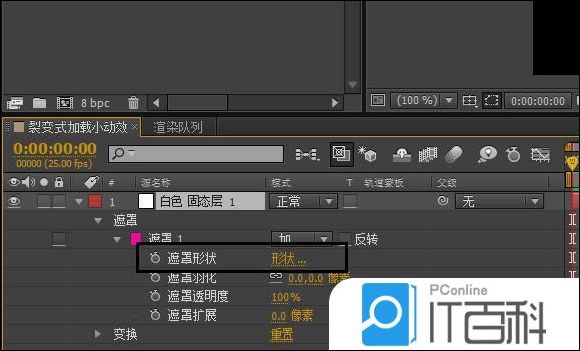 3、展开遮罩下拉,选中遮罩形状, CTRL+C复制路径 ,然后选中圆形图形图层P键打开位置属性, CTRL+V黏贴路径, 同时关闭固态图层,这里固态层起到一个路径过度作用。