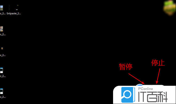 5、若要停止或是暂停录制,则把光标移动到【 颜色按钮 】上,选择上的双竖线暂停或者是点击红色的方块为停止录制。根据你的需要选择一个。