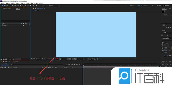 1、打开启动AE软件,先新建一个项目,在创建一个AE合成,然后接下来就可以在这个创建的AE合成中进行编辑了。