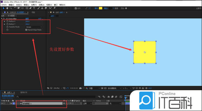 4、在效果控件中设置 CC Cross Blur 效果参数, X与Y模糊数值都为200 ;其他设置如下图所示即可。