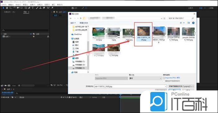 2、执行文件中的导入 文件命令 ,然后在打开的导入窗口中找到一张我们提前准备好的图片导入到AE中。