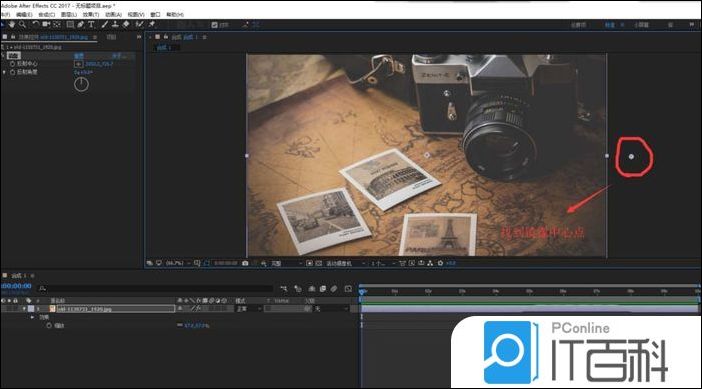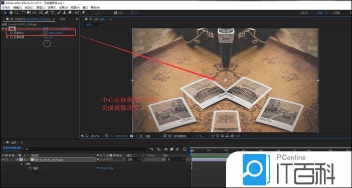 6、直接移动中心点或者在效果控件中通过反射中心的参数来调整中心点的位置, 将中心点移到图片中心位置 ,这时候我们就看到图片以中心点左右镜像的效果了。