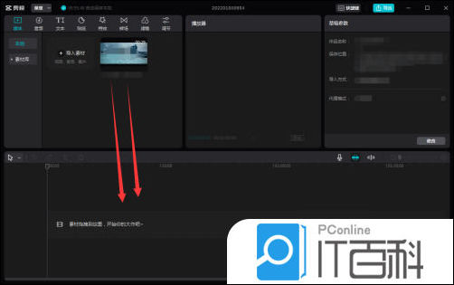 第二步:导入素材后,把视频拖到剪辑下面去。