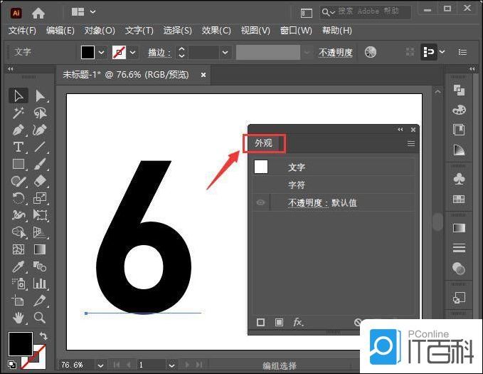我们用【文字工具】输入自己需要的文字,比如:数字6,如图所示。