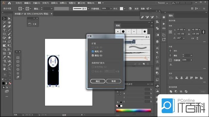 选中无脸男,在菜单栏点对象-扩展。然后点“确定”按钮。