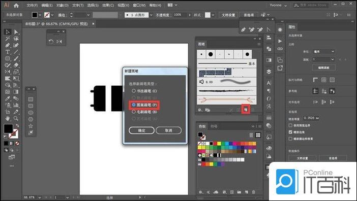 打开画笔面板,新建画笔,选图案画笔,然后点“确定”按钮。