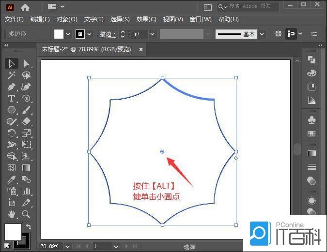 接下来, 我们按住【ALT】键单击圆点 ,这样多边形就会变成往里收缩的效果了,如图所示。