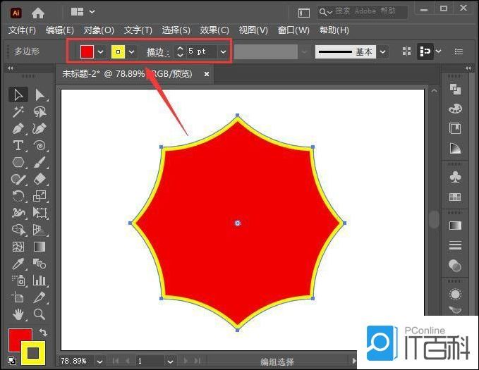 我们选中形状,更换成自己喜欢的颜色,把描边为5pt,如图所示。