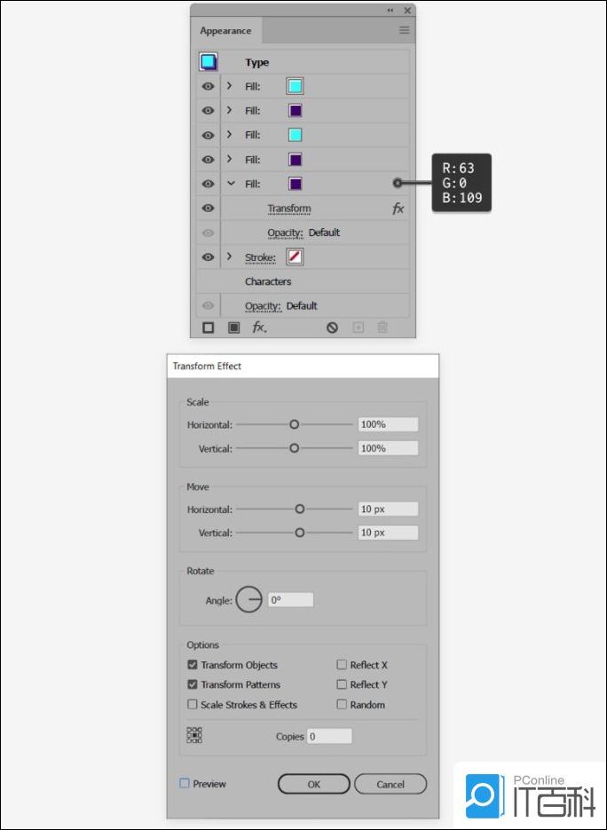 第6步、 确保您的涂鸦文本保持选中状态,并继续关注外观面板.
