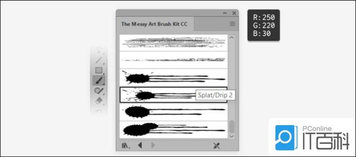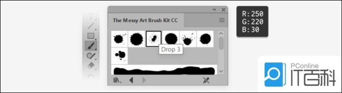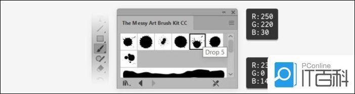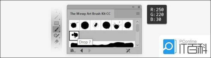 步骤8、 选取画笔工具( B ),然后选择 Splat / Drop 4 艺术画笔.多次使用此 Illustrator 涂鸦喷刷,如下图所示.