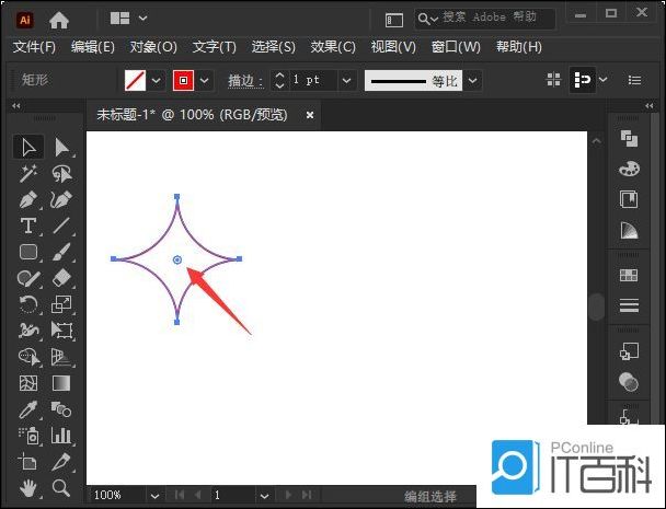 按住边框上面的任意一个圆点往中心移动,让四个角变成尖尖的效果。