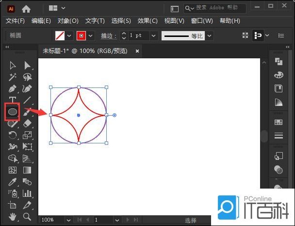 接下来,我们用【 椭圆工具 】在尖尖的形状外面画出一个圆形。