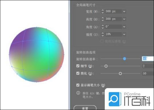再次双击【旋转扭曲工具】,将参数调小,开始混合颜色;