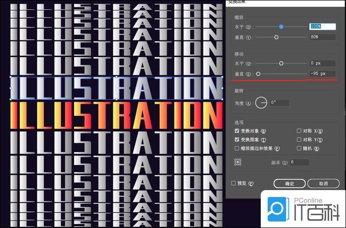 2.复制一个并改变渐变颜色,执行效果-扭曲和变换-变换,调整相应参数。上下都来一遍,形成下图效果。