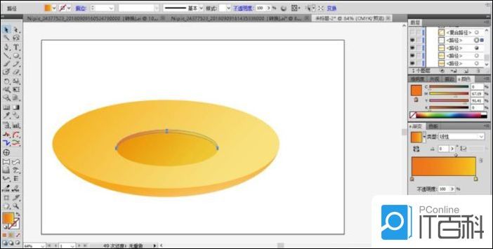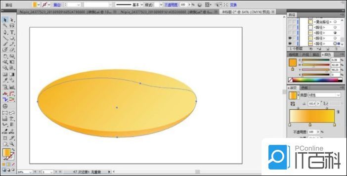 2、再来绘制出另外的一个椭圆并填充为橙红色的渐变放在原来椭圆的下方,这就是盆子的底部。