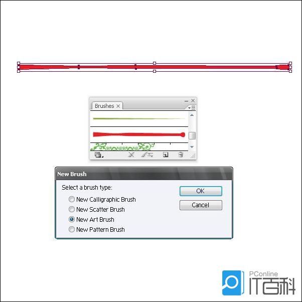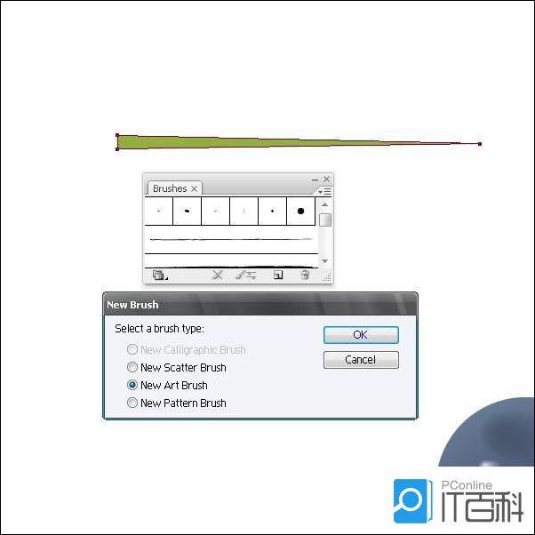 在叶子上创建脉络,使用钢笔工具(P),创建这个脉络形状,拖拽这个形状到笔刷工作面板,在这个对话框选择你刚刚已经创建的艺术笔刷。