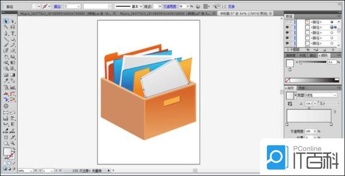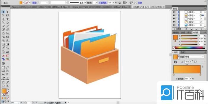 9、最后,我们绘制完成收纳箱中右侧的最后一个橙色的文件夹,完成收纳箱内的所有的元素的绘制。把最右侧的文件夹设置成 半透明 的效果。
