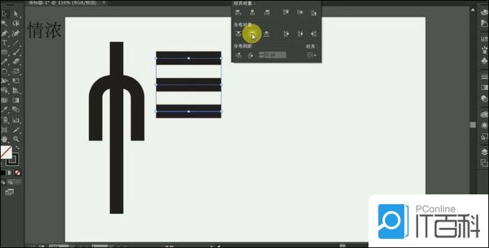 复制三层竖线,【旋转】,调整大小,执行【平局分布】。