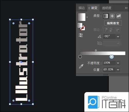 1.打开AI软件,随意创建文字,添加蒙版,使其看起来由亮到暗。这种方式也不是绝对的,也可以填充渐变色,使文字看起来有层次感。